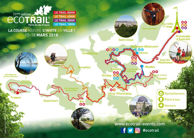 Depuis son origine, le concept EcoTrail Paris est nourri par l’envie de proposer une course nature dans un événement qui à-priori ne s’y prête pas. Chaque année, notre ambition est donc de (dé)montrer aux passionnés d’outdoor tout le patrimoine naturel, culturel et historique de la région Ile-de-France. Les parcours des trails, marches nordiques et randonnées traversent des lieux que vous aurez plaisir à (re)découvrir, faisant de votre épreuve une belle balade touristique.